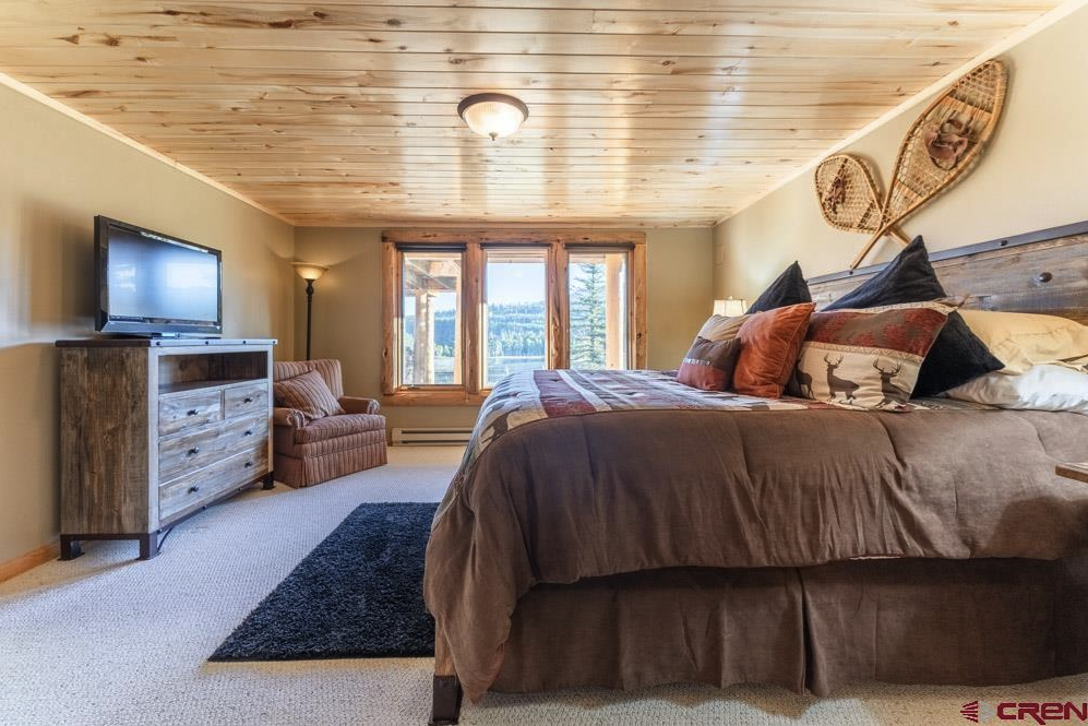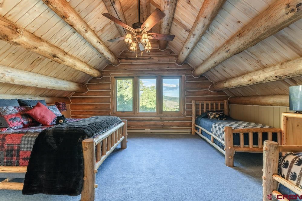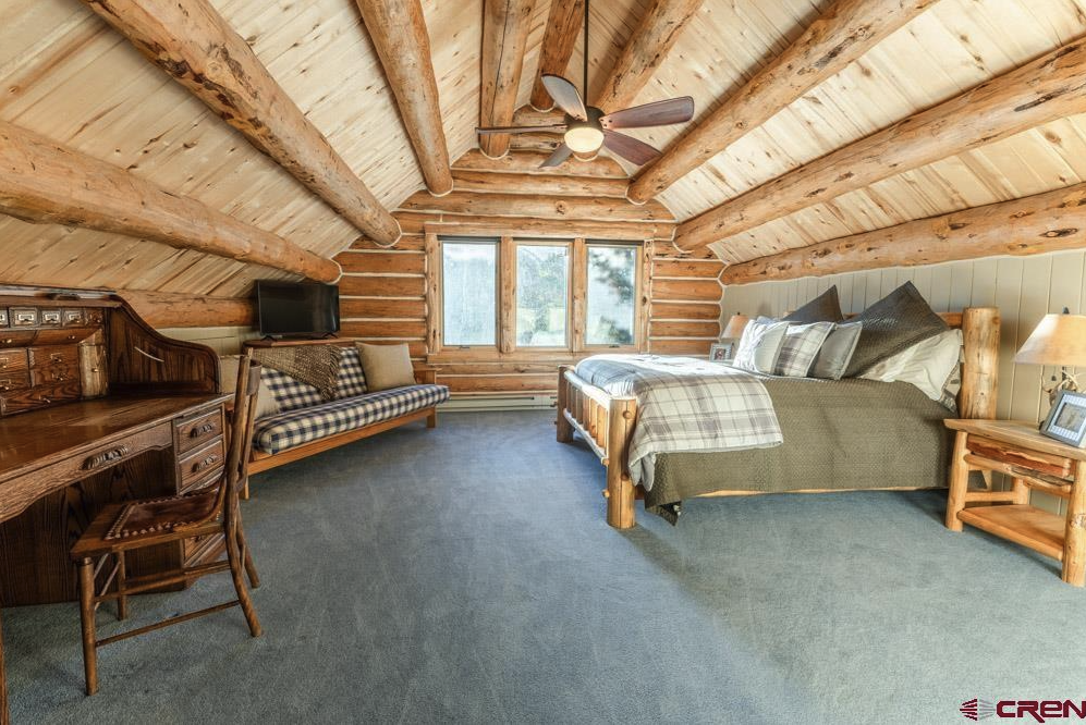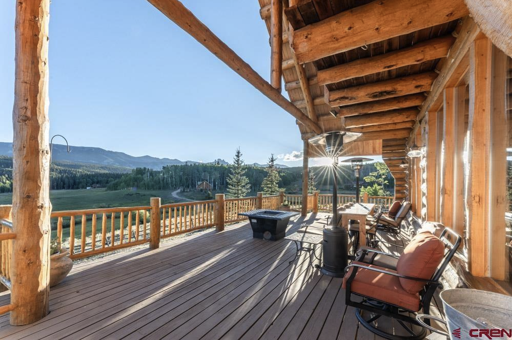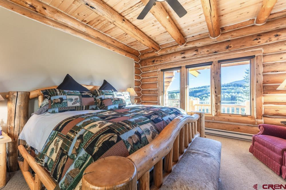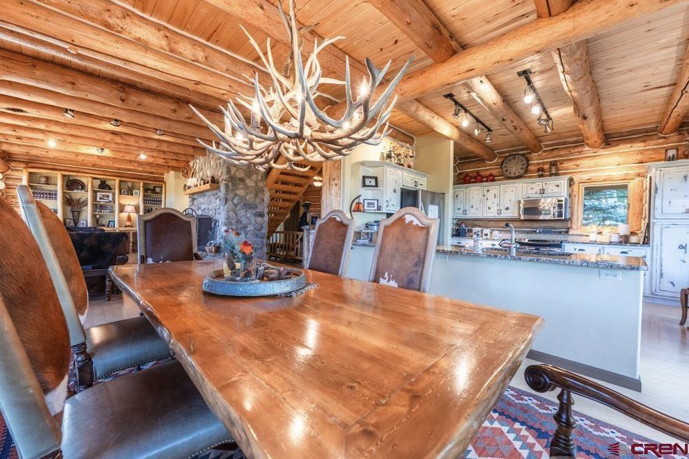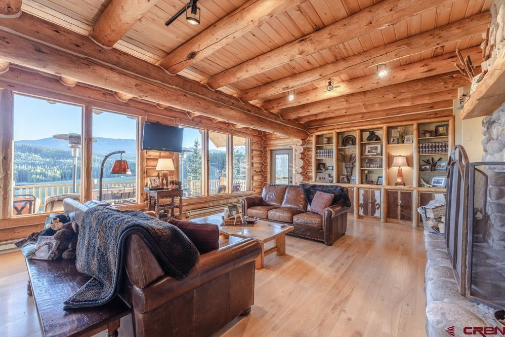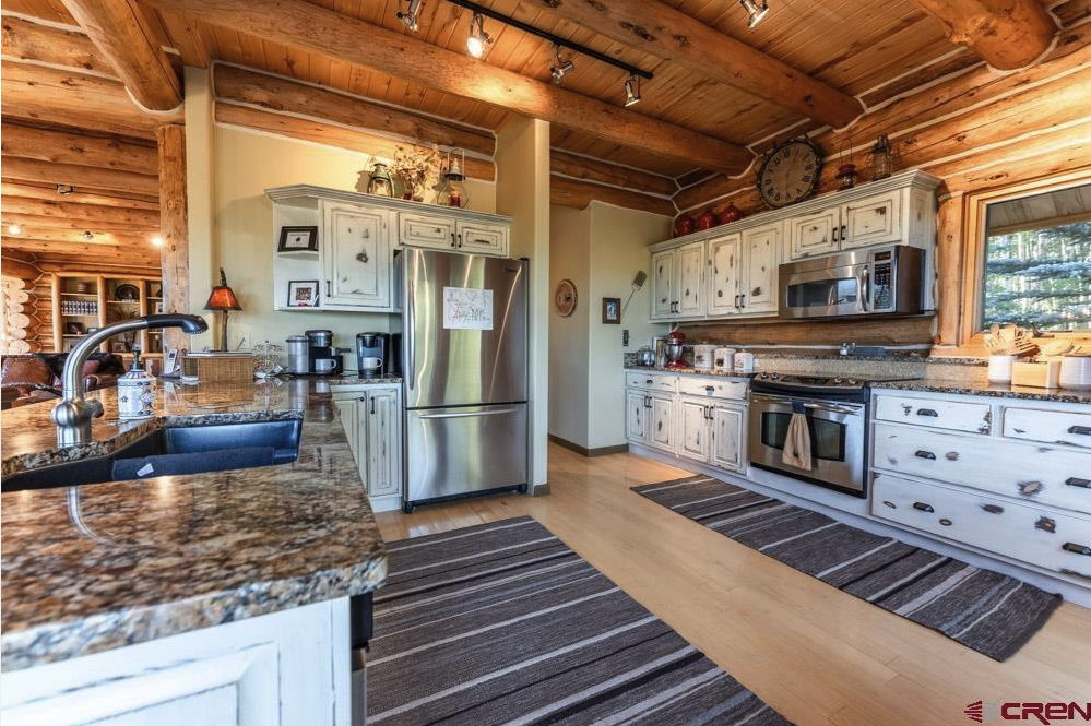 Other notable items include hand-peeled 10″ log detail throughout, aspen tongue-